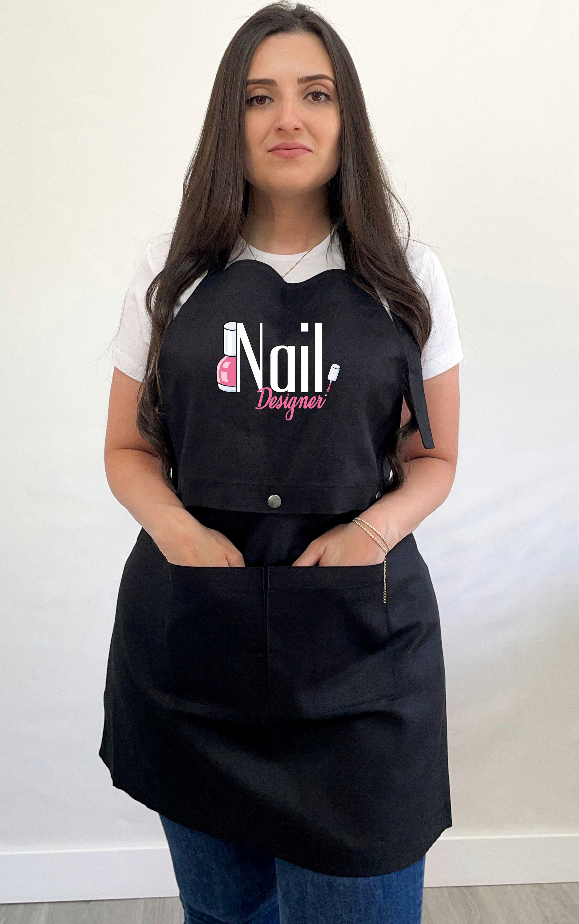 Avental de adulto unisex para profissional de Cabeleireira, Cabeleireiro, Barbeiro, Nail, Lash, Hairstylist. Com alça no pescoço ajustável, Fivela deslizante em plástico reforçado, Duas alças na cintura, 2 bolsos, Gramagem de material de 190G, Composto de 80% poliéster, 20% algodão.