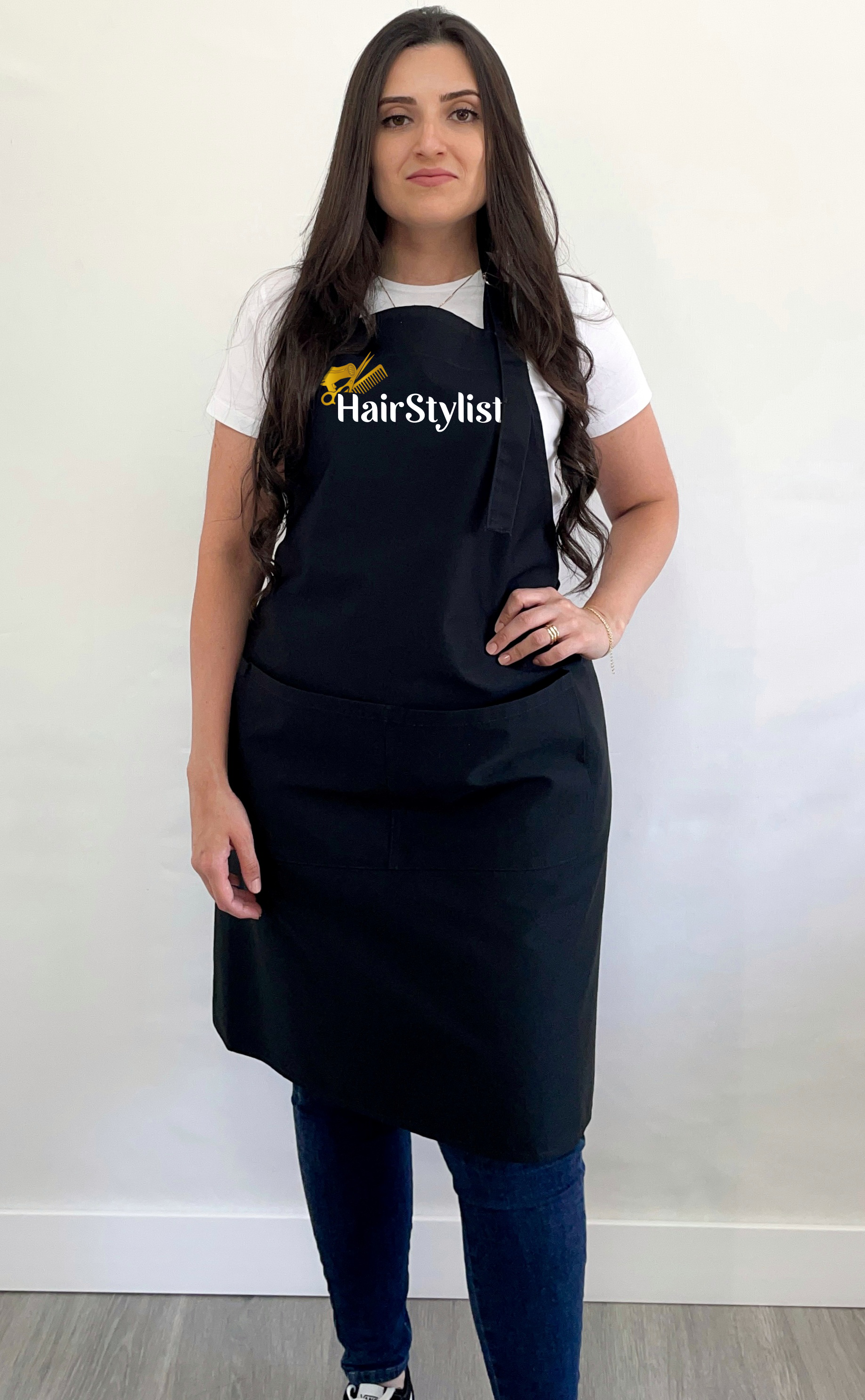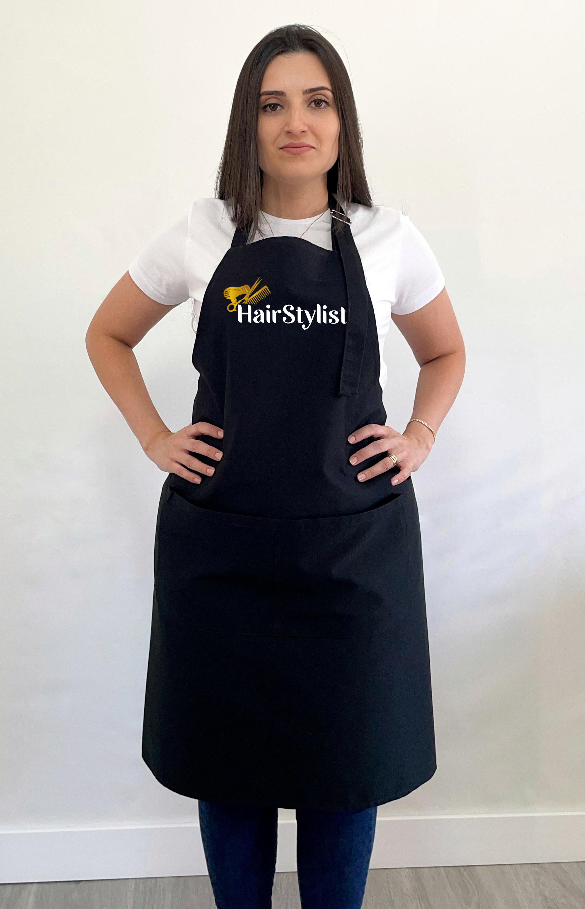 Avental Bata Profissional Hairstylist com Bolso Duplo estampa Dourada
