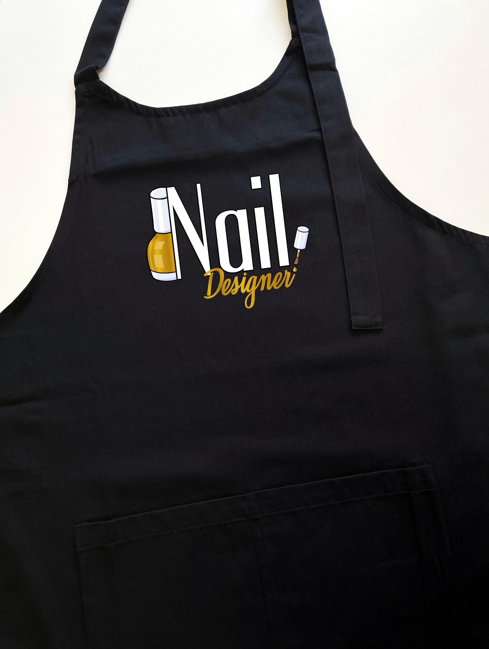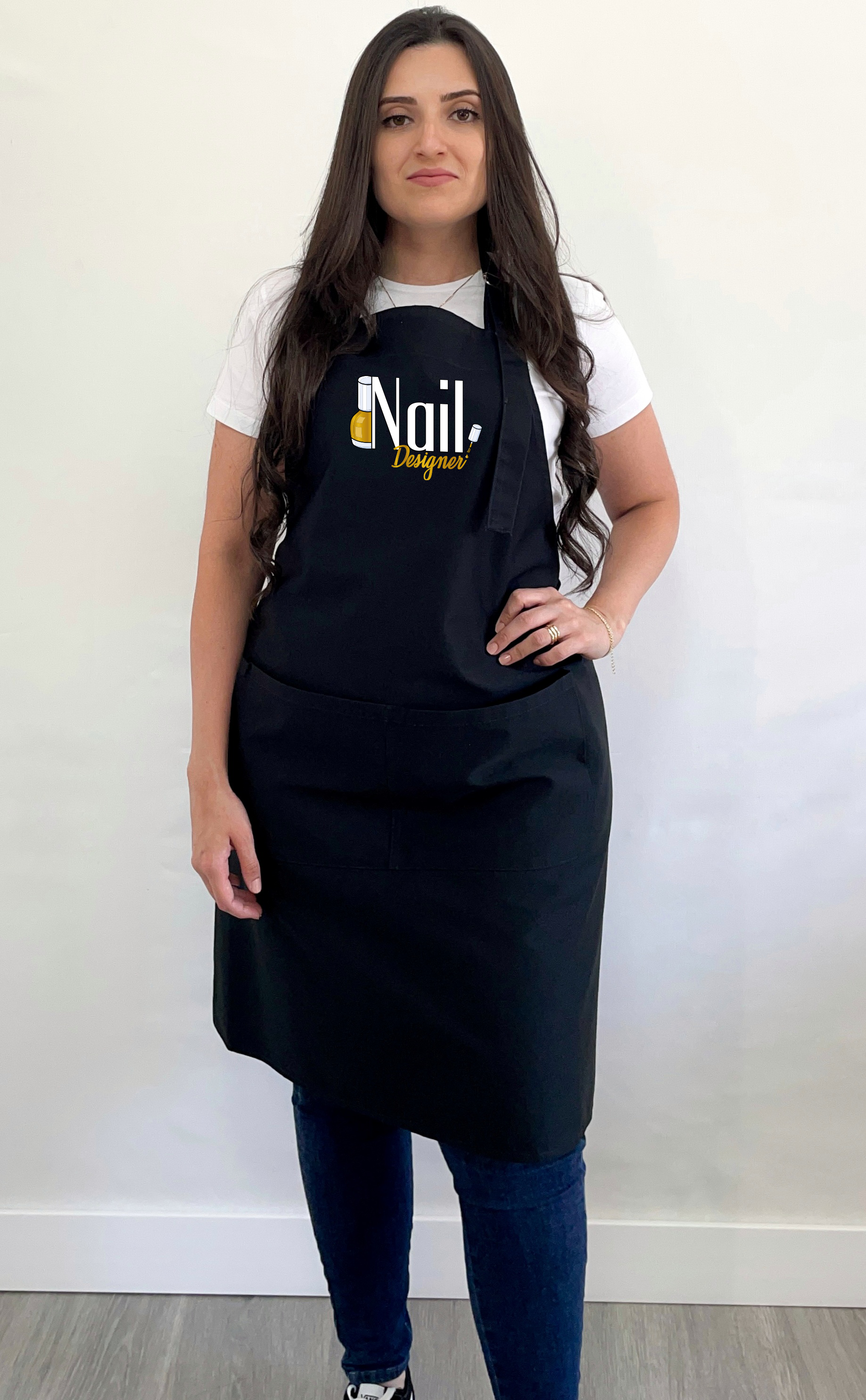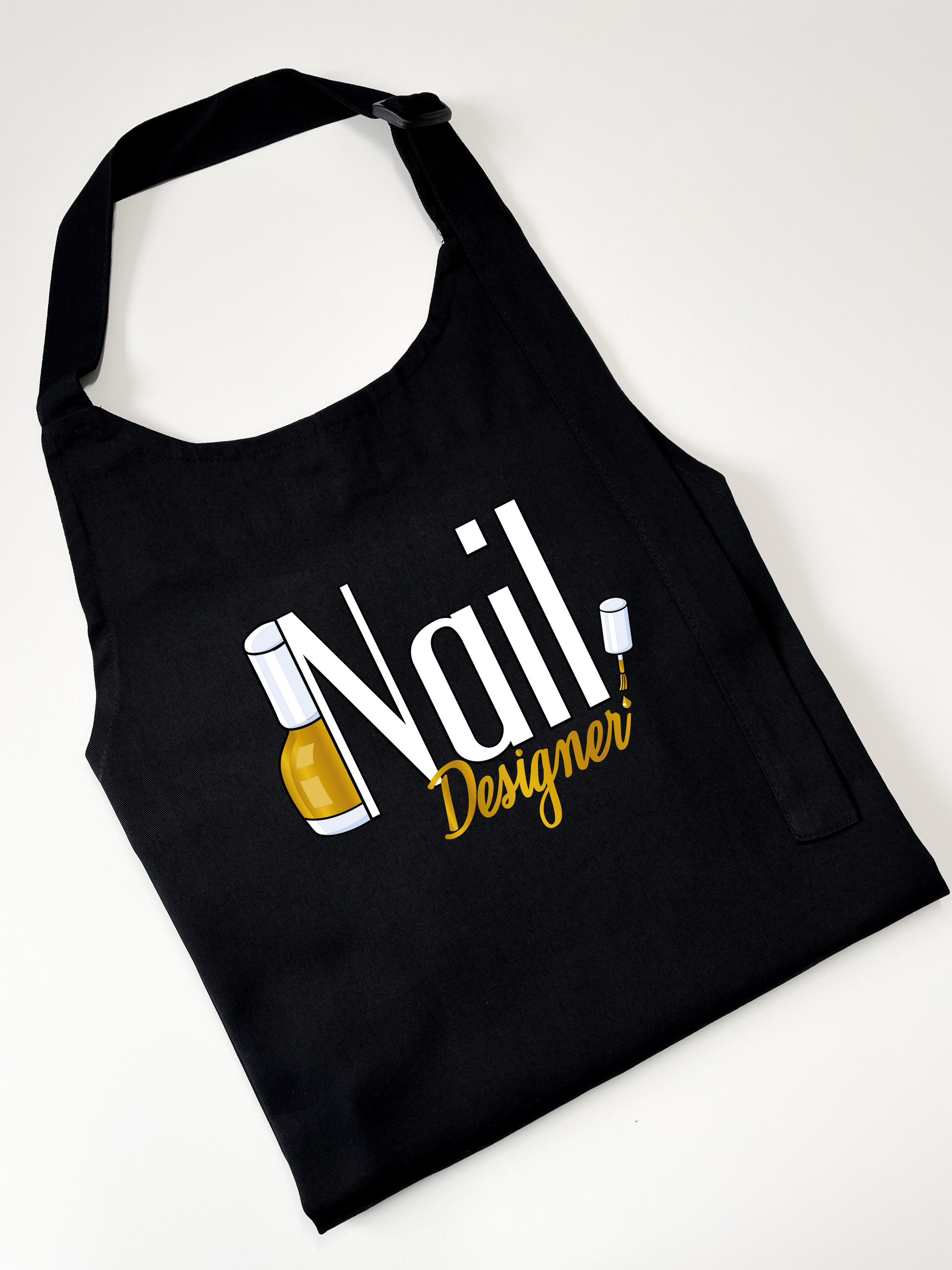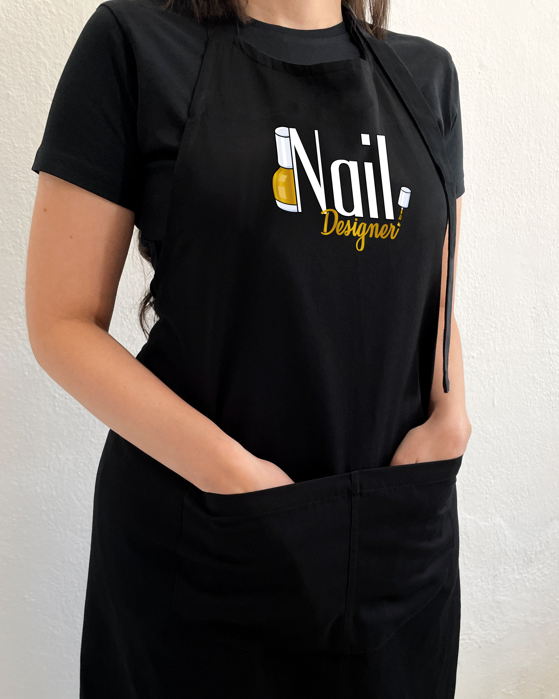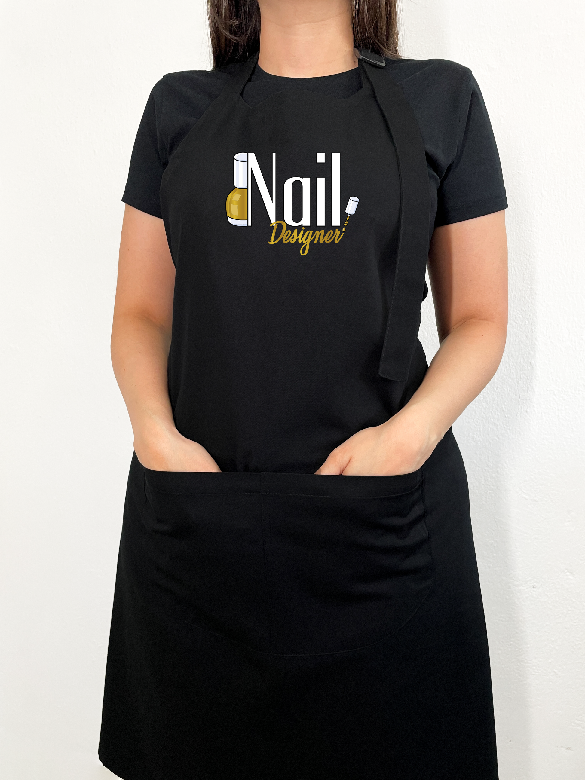 Avental Bata Profissional Nail Design com Bolso Duplo estampa Dourada