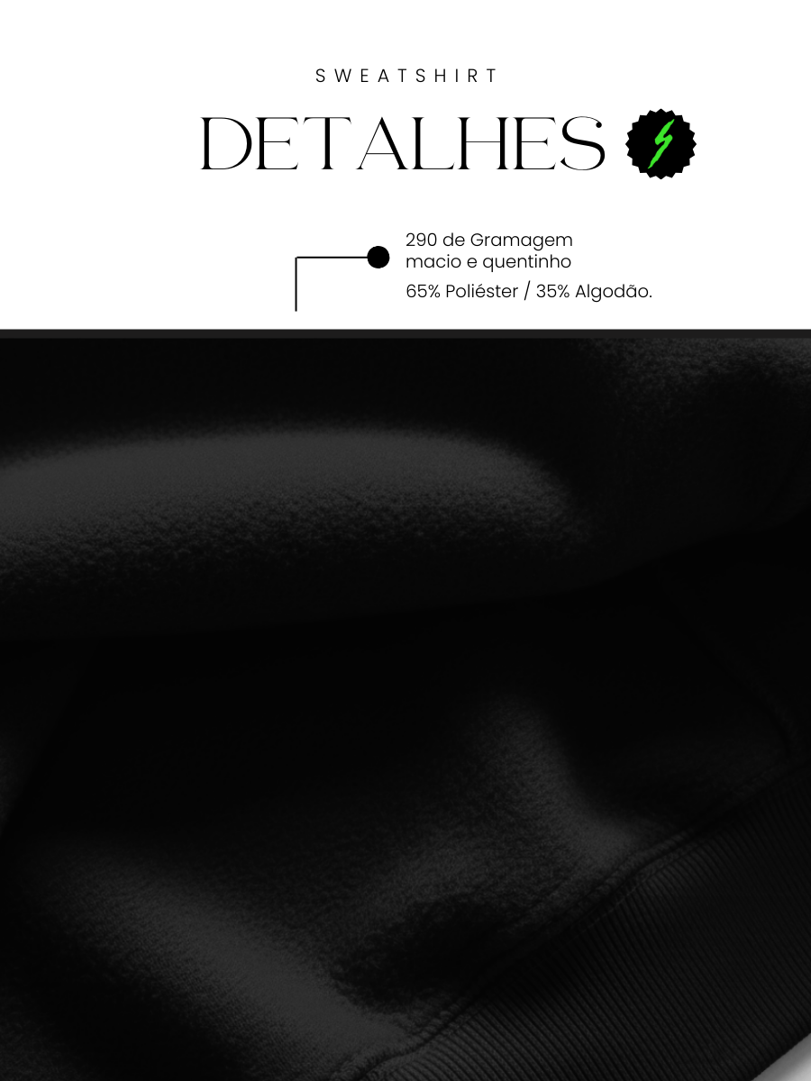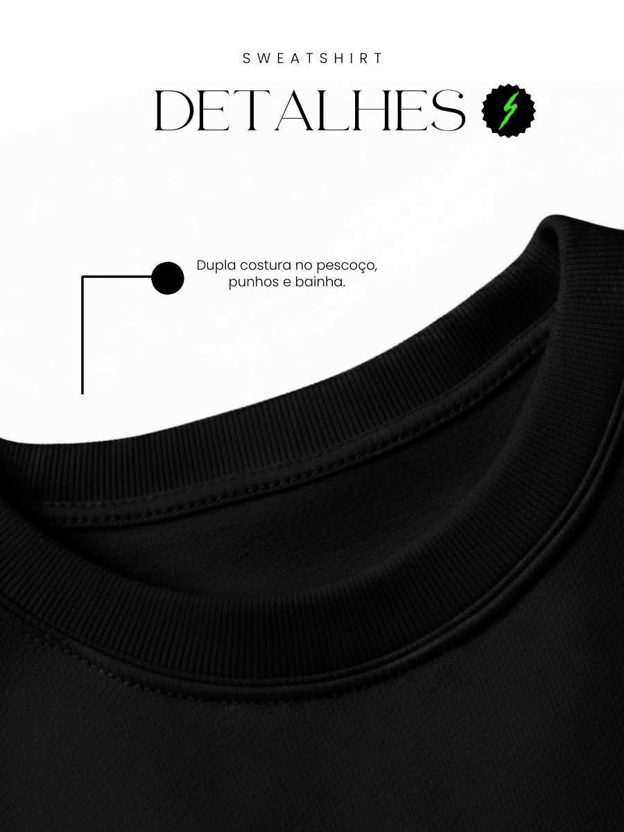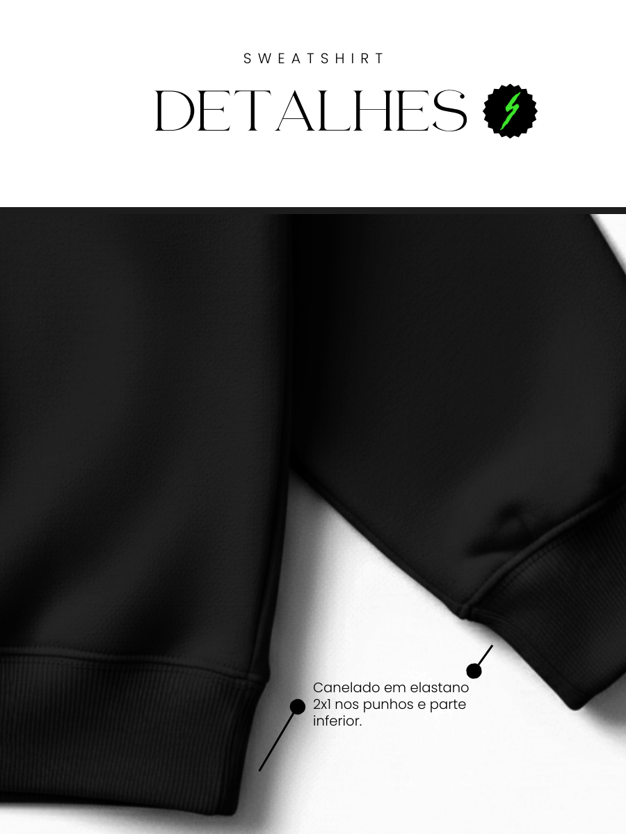 Detalhes: Canelado 2x1 nos punhos e base; Dupla costura de reforço.